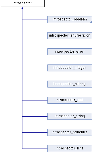Implemented in introspector_enumeration, introspector_time, introspector_structure, introspector_integer, introspector_real, introspector_nstring, introspector_string, introspector_boolean, and introspector_error.