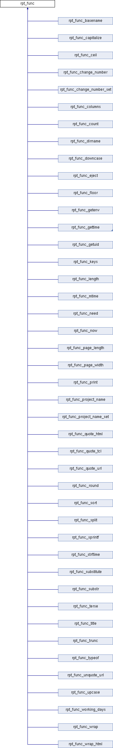 Implemented in rpt_func_quote_tcl, rpt_func_trunc, rpt_func_quote_html, rpt_func_round, rpt_func_project_name_set, rpt_func_working_days, rpt_func_change_number_set, rpt_func_dirname, rpt_func_mktime, rpt_func_page_length, rpt_func_unquote_url, rpt_func_floor, rpt_func_wrap_html, rpt_func_print, rpt_func_now, rpt_func_project_name, rpt_func_change_number, rpt_func_columns, rpt_func_count, rpt_func_basename, rpt_func_downcase, rpt_func_eject, rpt_func_getenv, rpt_func_gettime, rpt_func_getuid, rpt_func_keys, rpt_func_length, rpt_func_mtime, rpt_func_need, rpt_func_page_width, rpt_func_quote_url, rpt_func_ceil, rpt_func_sort, rpt_func_split, rpt_func_sprintf, rpt_func_strftime, rpt_func_substitute, rpt_func_substr, rpt_func_terse, rpt_func_title, rpt_func_typeof, rpt_func_upcase, rpt_func_wrap, and rpt_func_capitalize.