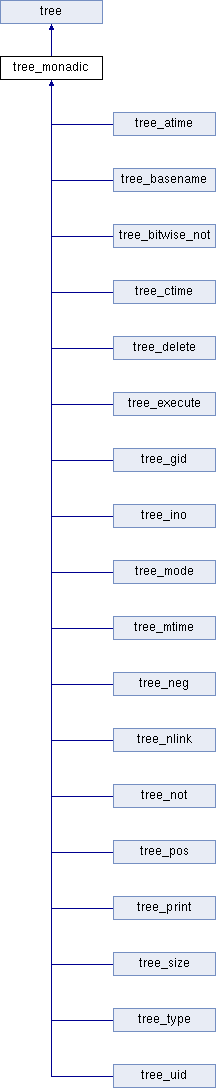 The tree_monadic class is used to represent an abstract tree one with a single argument.